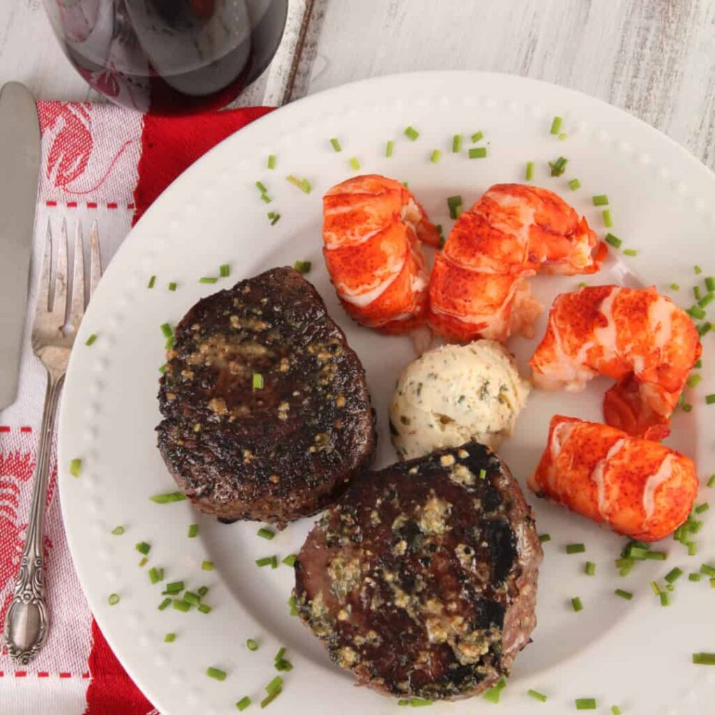 Our Lazy Man Lobster Dinner pairs freshly shucked Maine lobster tails with fork-tender 8-oz. filet mignons. No shells, no crackers needed—just restaurant-quality surf and turf in minutes. Steam the lobster for 4-5 minutes and you’ve got a showstopping Christmas meal.