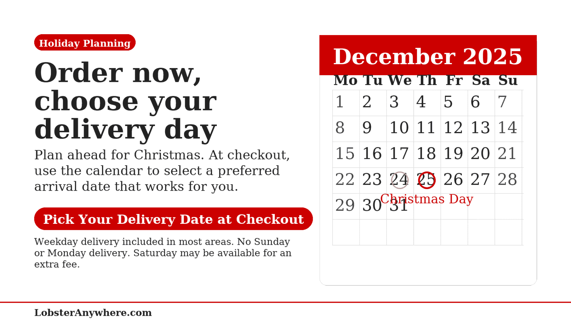 💡 Pro Tip: Use our Date Picker at checkout to schedule delivery for any day that works for you. Order now, relax later—one less thing to worry about during the busiest season.